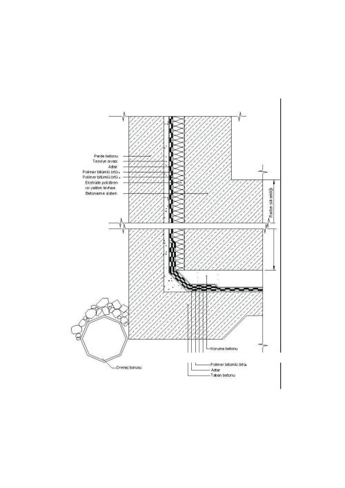 İçten temel-perde yalıtım uygulaması: Bitişik nizam yapılarda veya temel perdeleri dışında insan çalışmasına yeterli şev açıklığının bulunmadığı (bitişik nizam) hallerde tercih edilir. Bu sistemde ana prensip, bir dış çanak iç yüzüne yatayda ve düşeyde bir defada yalıtım yapılması ve binanın bu havuz içine oturması şeklindedir. Dış çanağın muhtemel farklı oturmalara uyum sağlayabilmesi için betonarme hazırlanması tavsiye edilir. Dış çanak içine yatay ve düşeydeki yalıtım tamamlandıktan sonra, her iki düzlemdeki yalıtım katmanları koruma altına alınır. Son olarak, binanın taşıyıcı sistemi (radye temel ve perde duvarlar ile iç çanak) yapılarak bitirilir.